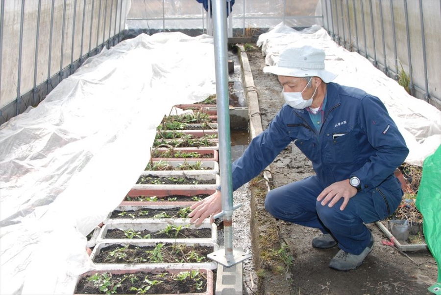 キセルアザミやノアザミを育て、生育の環境を整えている