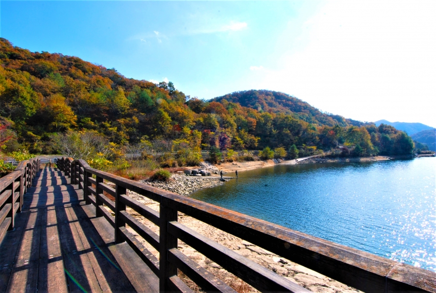 八田原ダムによって形成された人口湖の芦田湖畔には、橋脚を持たない世界最大級の吊床版橋の「夢吊橋」があるなどサイクリングにも最適!