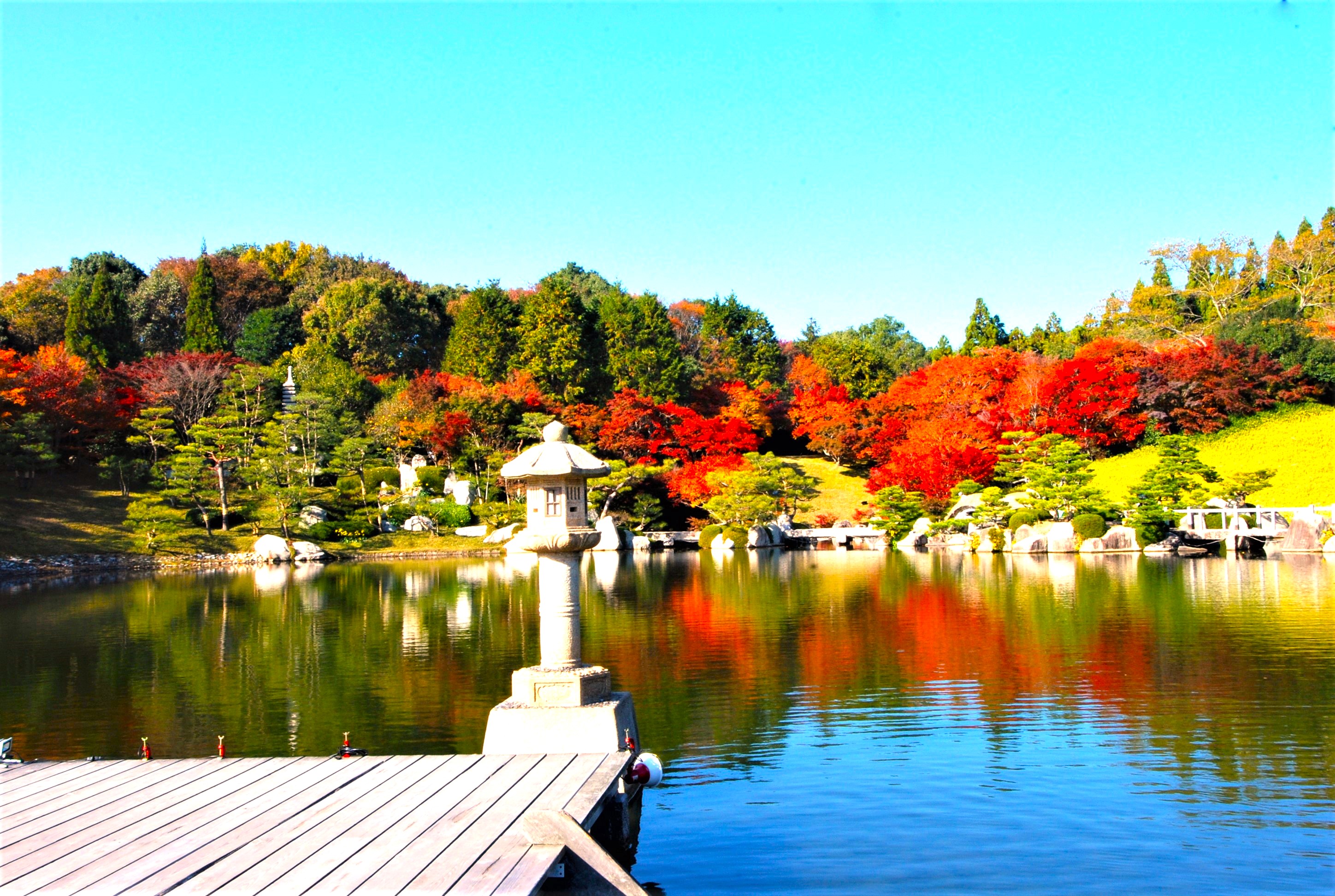 三景園は広島空港開港を記念して造られた築山池泉回遊式庭園。自然林を活かした「山のゾーン」、里山をイメージした「里のゾーン」、瀬戸内海を表した「海のゾーン」から造られ、「三景園」と名付けられました。